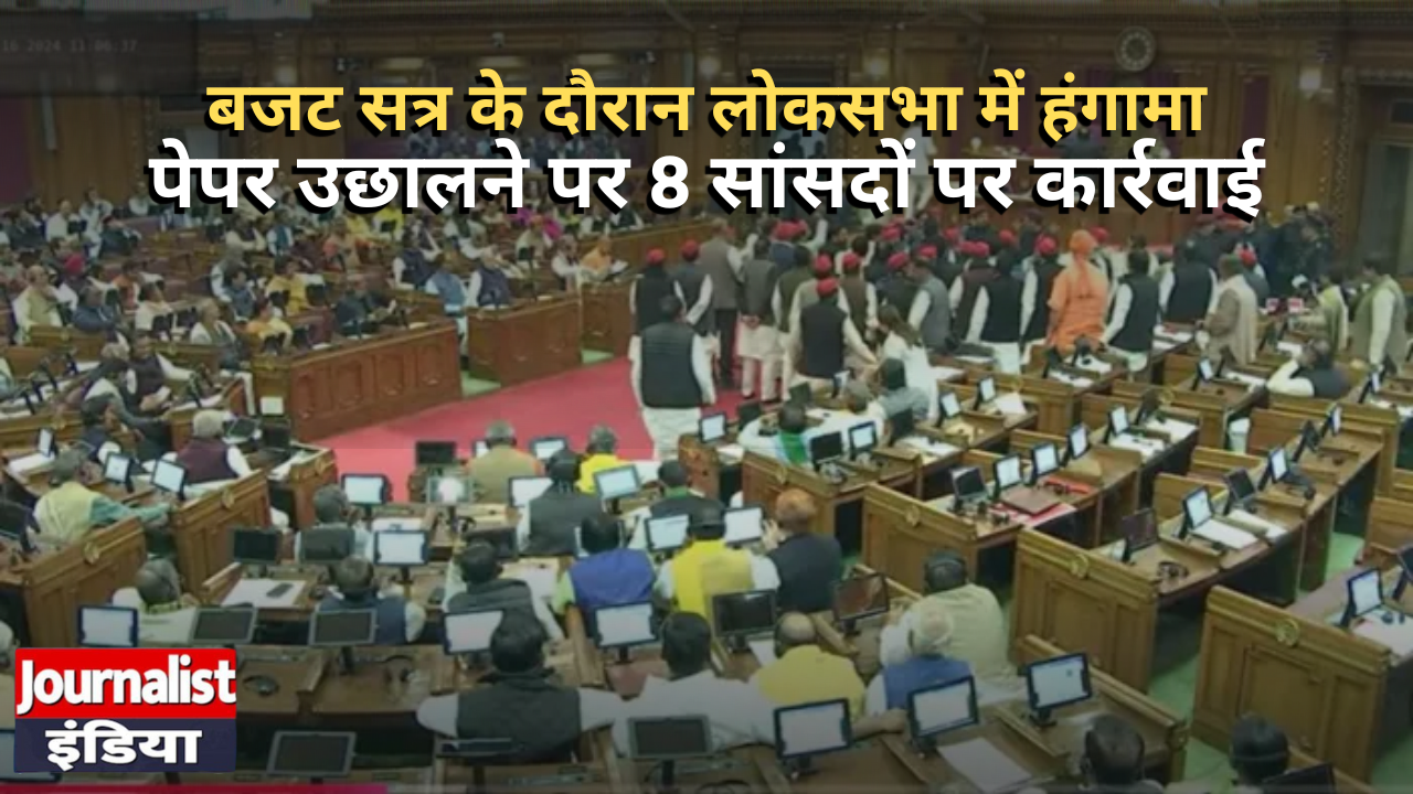 बजट सत्र के दौरान लोकसभा में हंगामा.. पेपर उछालने पर 8 सांसदों पर कार्रवाई, पुरे सत्र के लिए निलंबित
